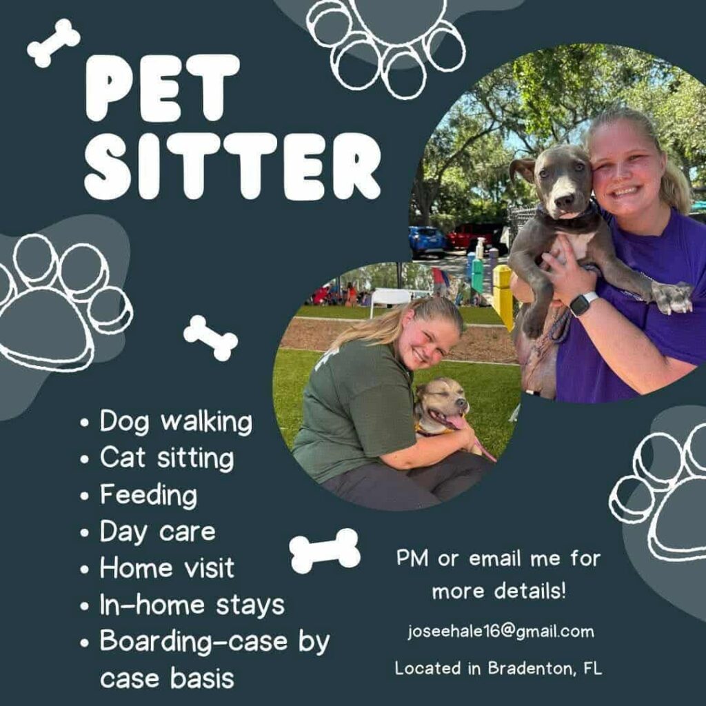 Available for dog walking, cat sitting, feeding, day care, home visits, in-home stays, and case-by-case boarding